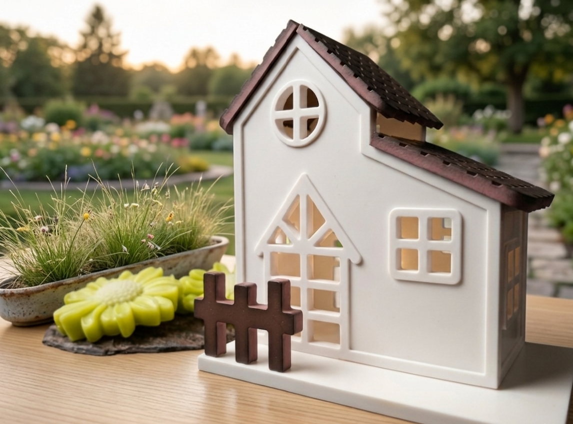 Domek z gipsu polimerowego. Piękna ozdoba wnętrza i ogrodu. Możliwość umieszczenia w środku ledowych lampek.