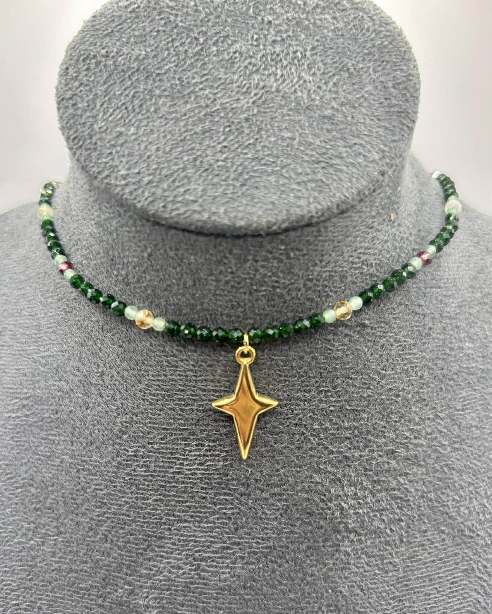 Całość dopełnia złota zawieszka w kształcie gwiazdy – symbolu przewodnictwa, intuicji i światła, które prowadzi przez życie.