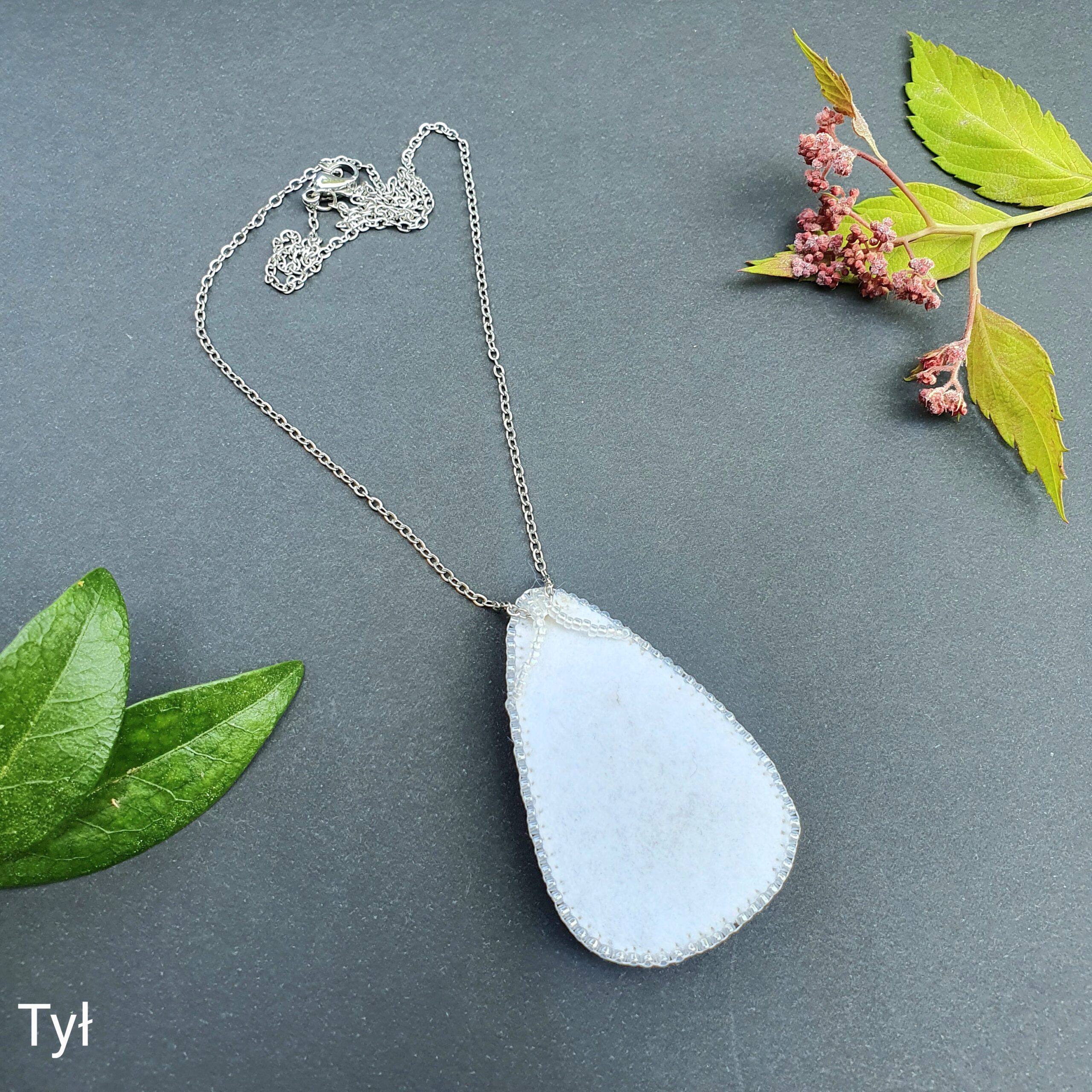 Naszyjnik można wykonać o podobnym kształcie z innym kamyczkiem lub całkowicie inny wg. własnego pomysłu, ponieważ każdy kamień naturalny jest inny.